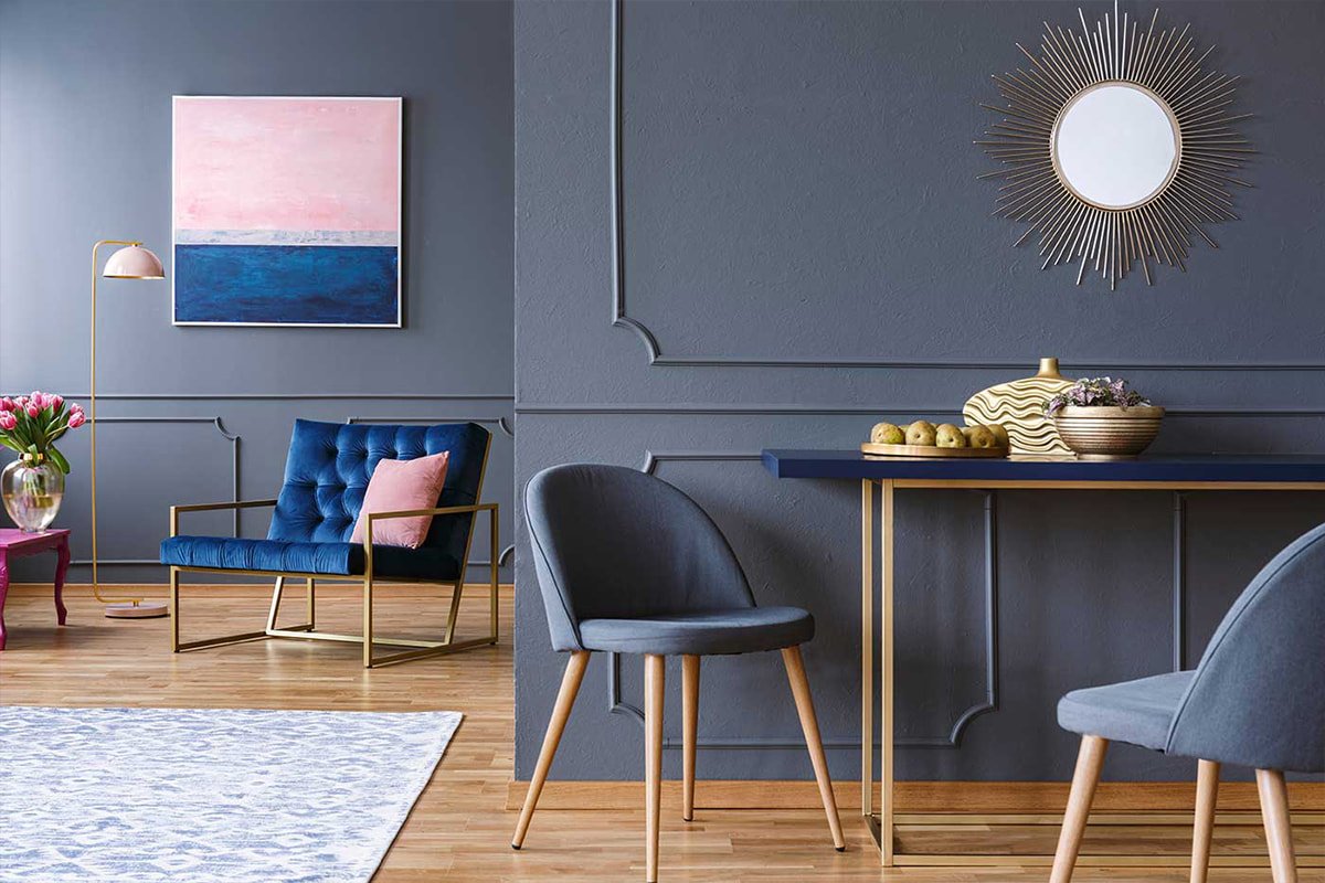 Съвет: Когато избирате дръзки цветове (като наситено синьо, розово или друг ярък нюанс), използвайте ги балансирано, като ги комбинирате с една неутрална основа (сиво, бяло, кремаво). Така ще запазите хармонията в пространството и ще избегнете претрупаност.