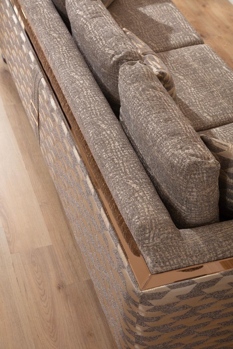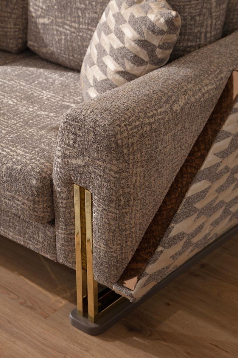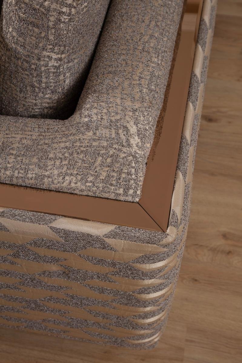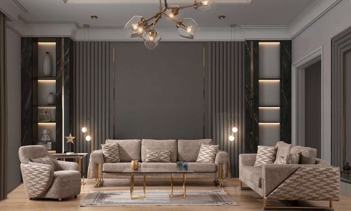 Съвременен холов комплект с елегантна тапицерия, мека седалка и изтънчени декоративни акценти – стил и комфорт в едно.