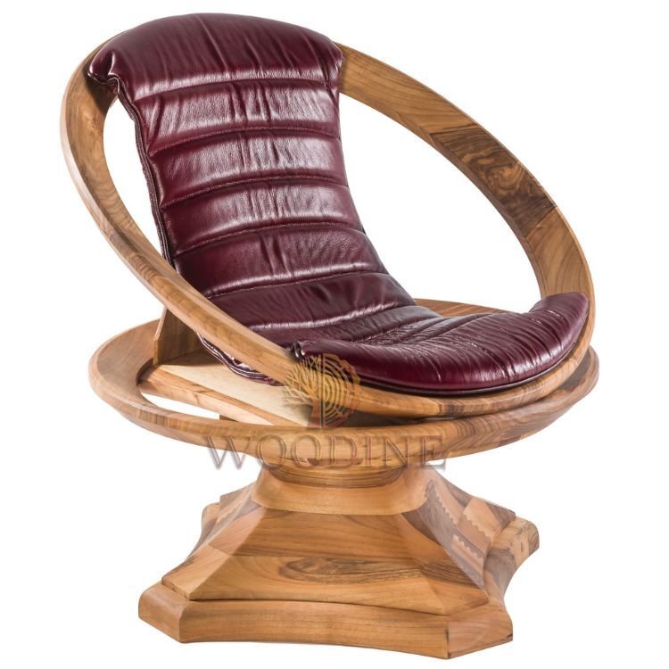 Градински стол Rolex Outdoor – Въртящ се с основа от масивно дърво и кожена седалка